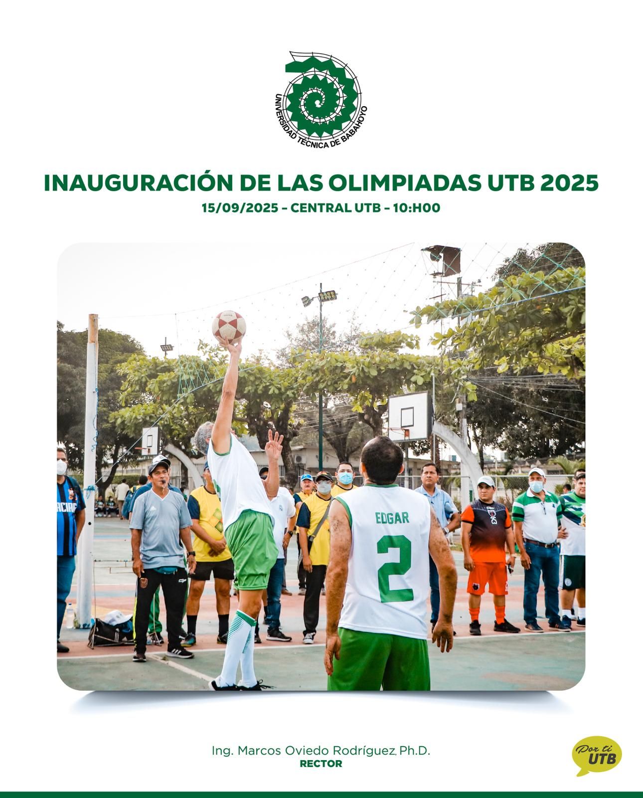 Este 15 de septiembre, en la Central UTB, se desarrollará la ceremonia de apertura que marca el inicio de una nueva edición de nuestras Olimpiadas, fortaleciendo la integración, el compañerismo y el espíritu deportivo de la comunidad universitaria.
