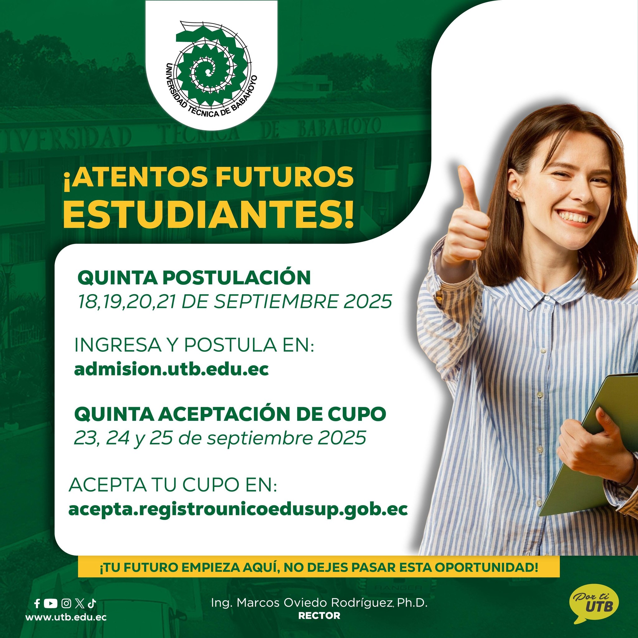 ¡Atención Futuros Estudiantes UTB! Abiertas las Postulaciones y Aceptación de Cupos.