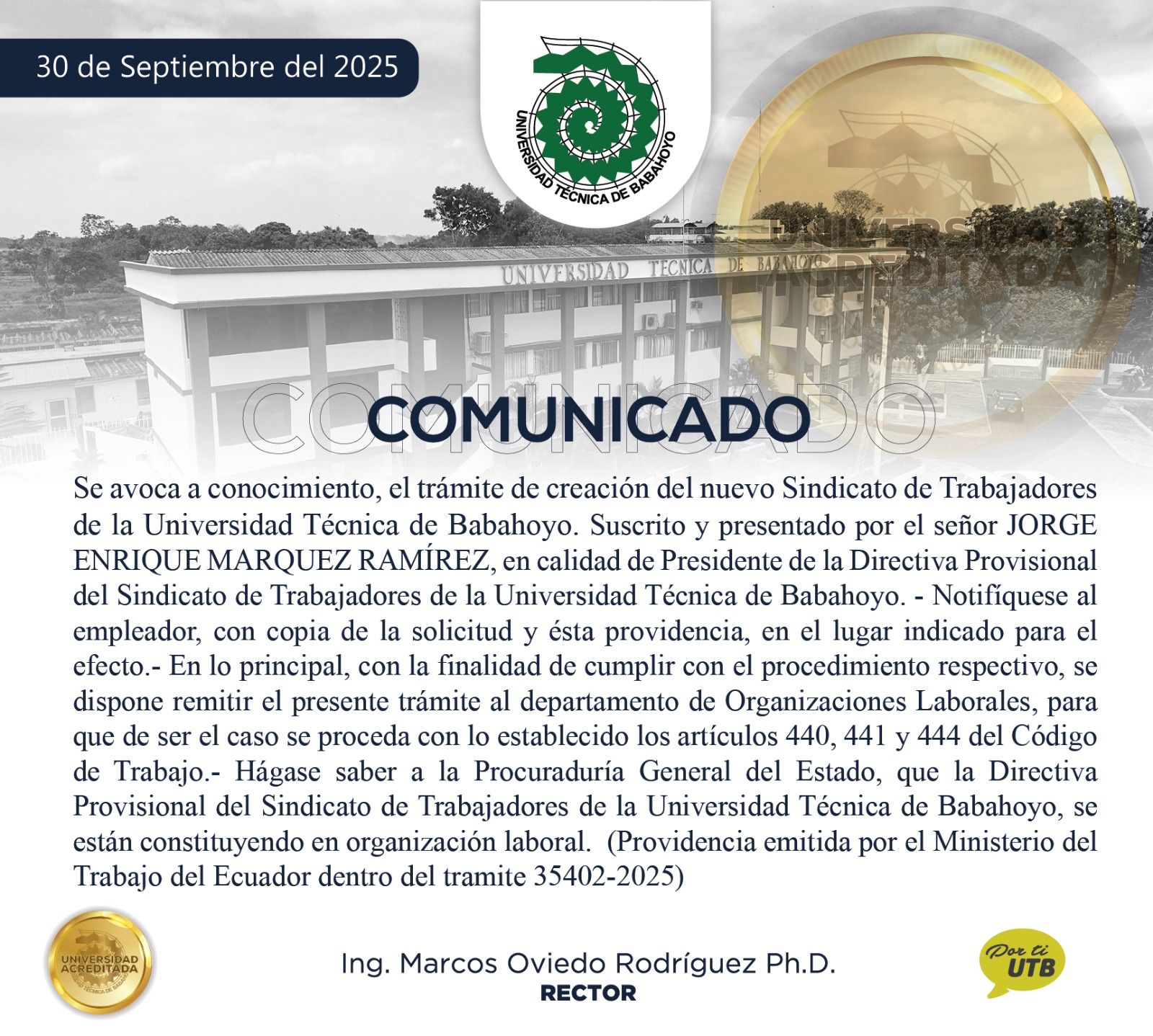 Comunicado UTB 30-09-2025