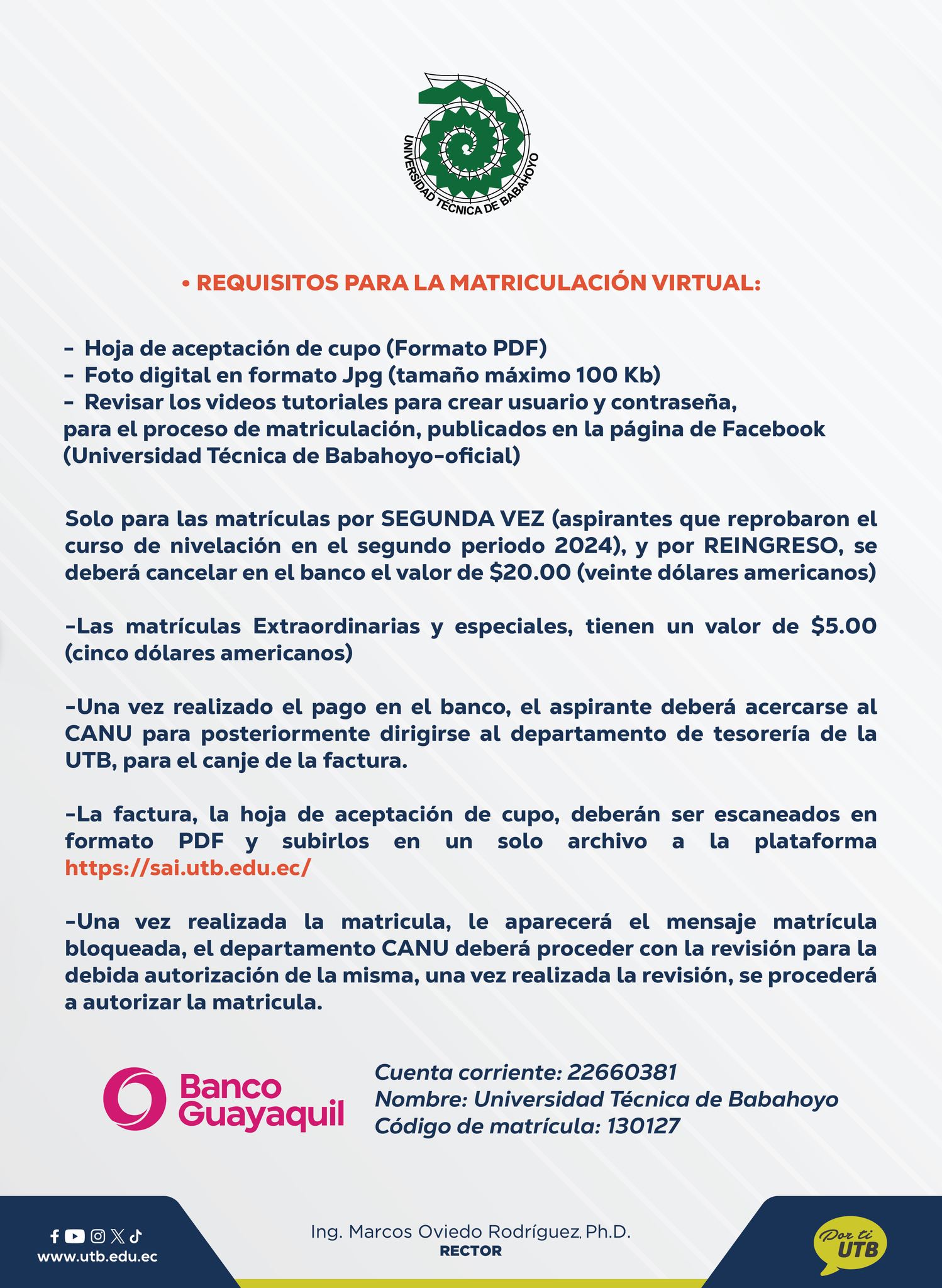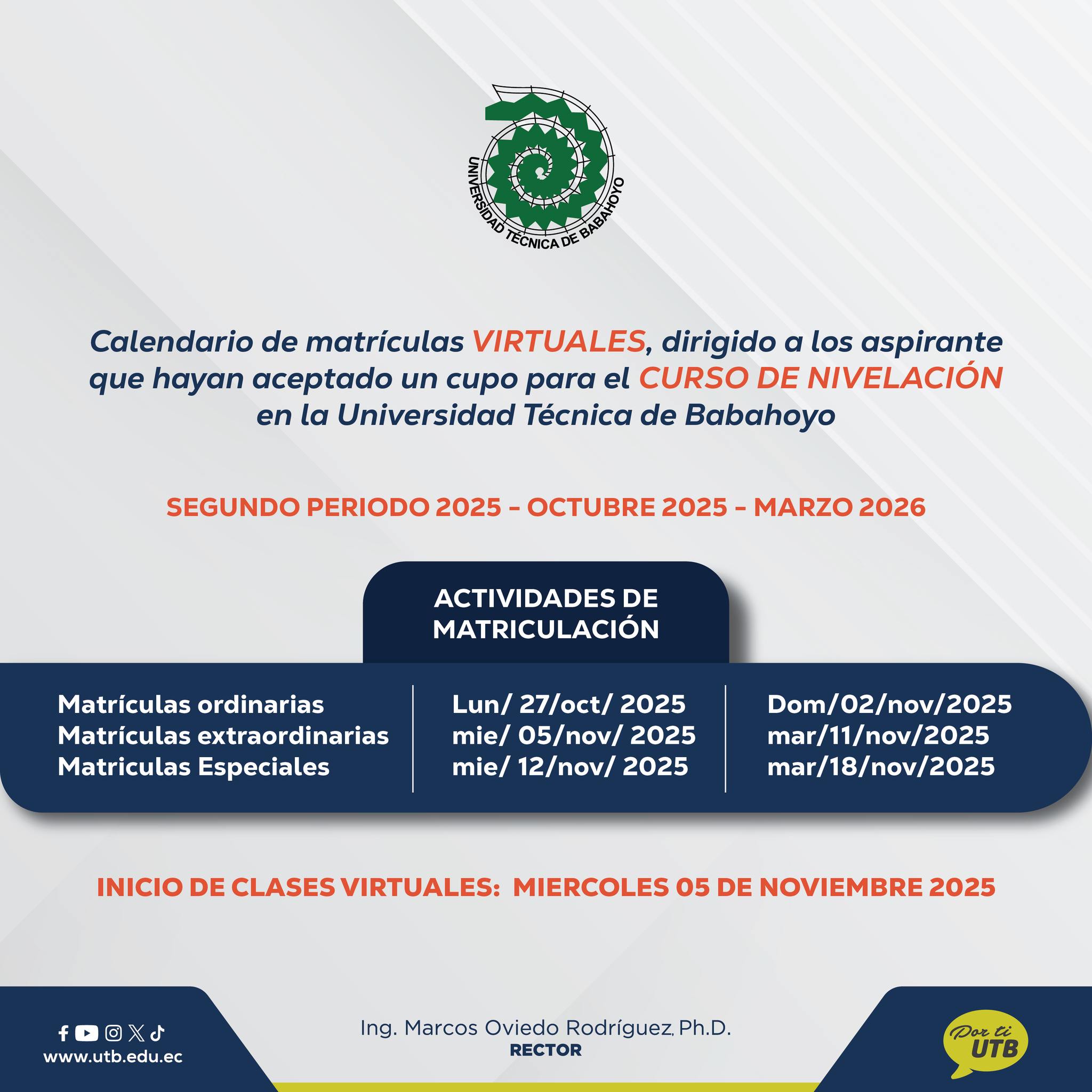 Si Aceptaste tu Cupo para el Curso de Nivelación, te Informamos que ya está Disponible el Calendario de Matrículas Virtuales