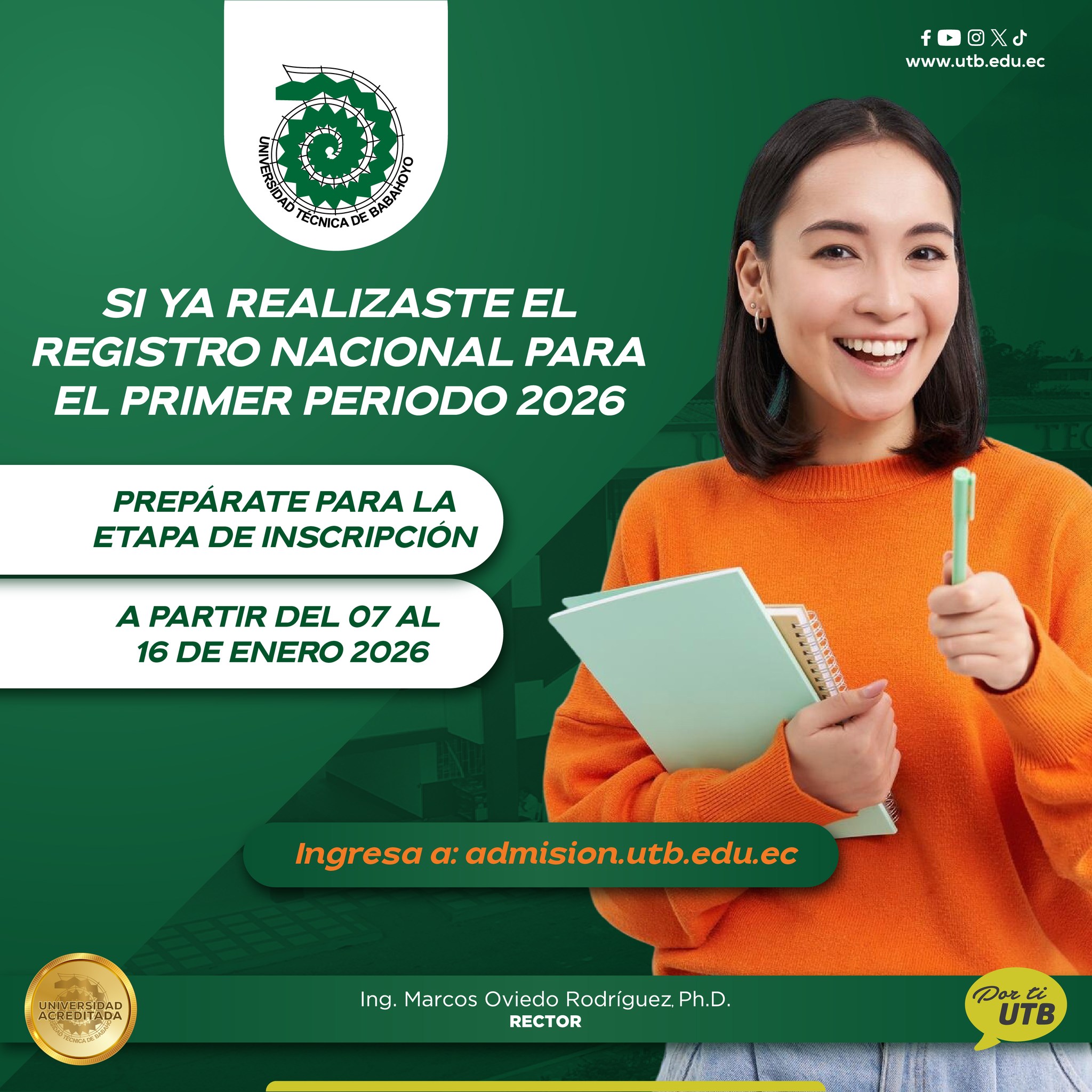 Si ya realizaste el Registro Nacional para el primer periodo 2026, es momento de prepararte para la etapa de inscripción en la Universidad Técnica de Babahoyo.