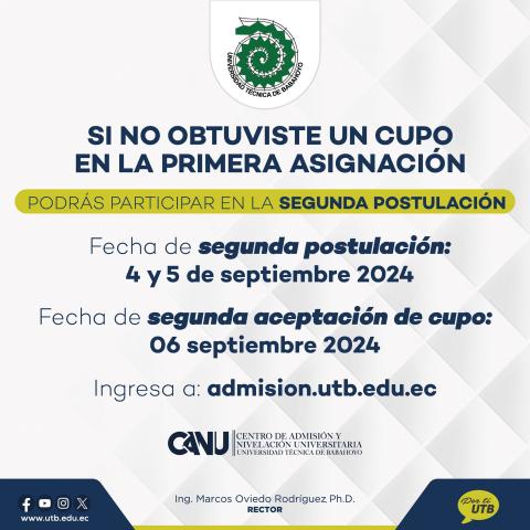 Comunicado UTB 3-09-2024 Segunda Postulación