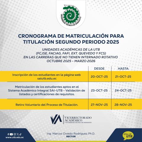Cronograma de Matriculación para Titulación del Se...